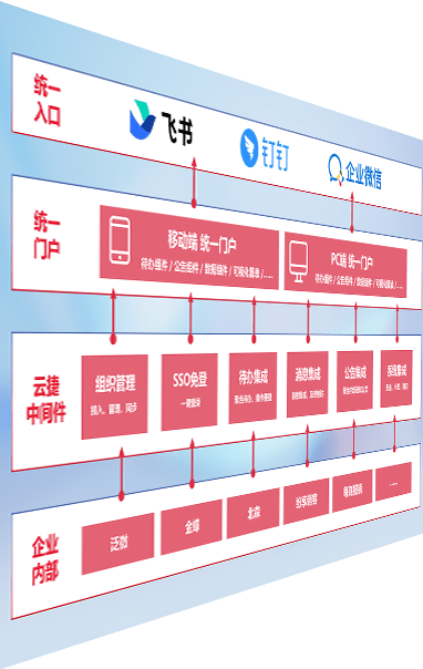 对协作平台提供支持服务,,,支持企业应用与协作平台对接,,,,包含组织同步、、、、消息集成、、、、待办集成等。。。支持目前主流的协作平台:钉钉、、、企微和飞书。。